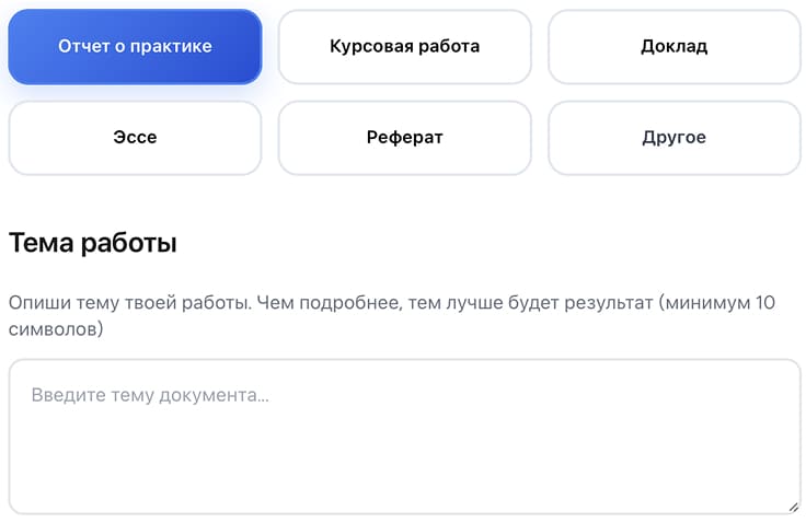 Очень помогает, особенно когда не знаешь, с чего начать, а время поджимает. Уже сдала несколько работ, сгенерированных Экзамкой. Текст получается структурированный , вся информаиця актуальная, у препода ко мне вопросов не было. В целом — удобный и быстрый инструмент.